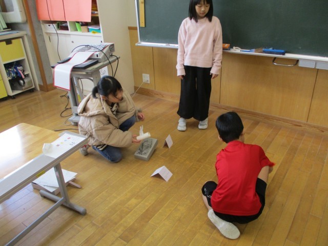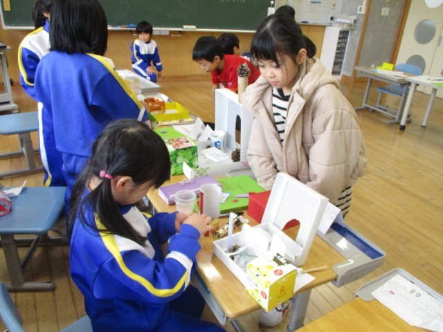 それぞれが作ったおもちゃを1・2年生で遊び、