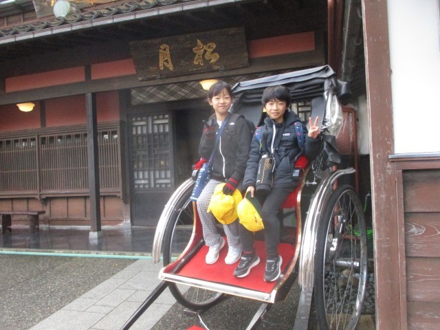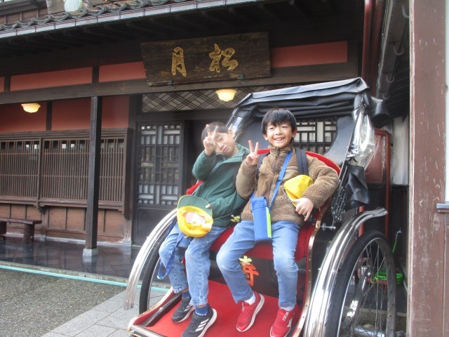 昔からの町並みを守っている岩瀬を散策していると、地域の方がご厚意で人力車を見せてくださいました。見せてくださるだけでなく、「よかったら乗ってみてください」と嬉しいお誘いを受け、少しだけ乗せていただきました。