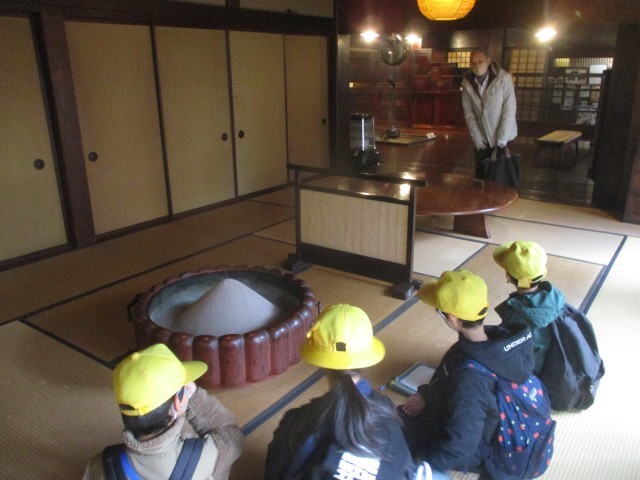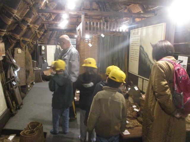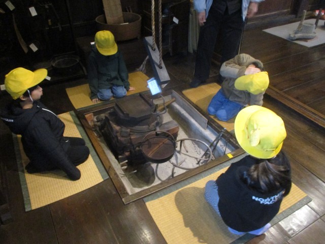 午後から民俗民芸村に行き、昔のくらしについて学びました。囲炉裏のことや、昔使われていた道具について教えていただきました。