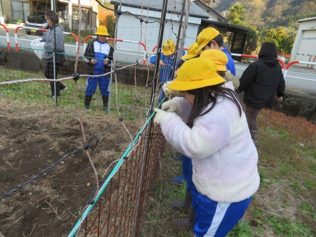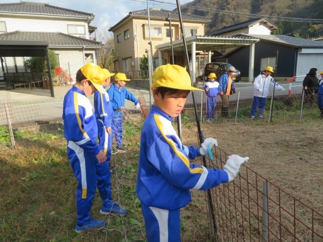 12月1日(月) 4・5・6年生 電気柵撤去作業