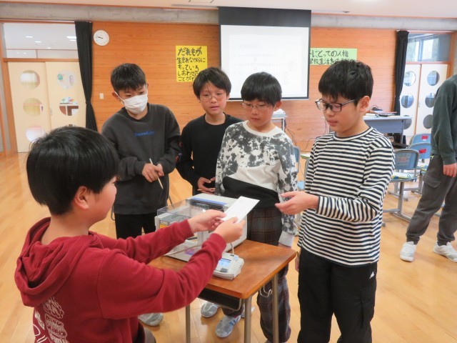 今日、5・6年生は選挙管理委員会出前講座を行いました。