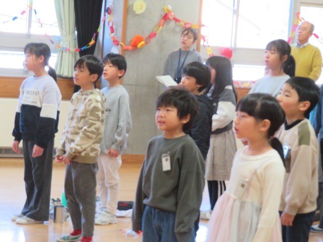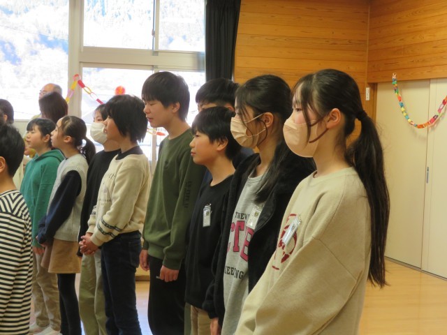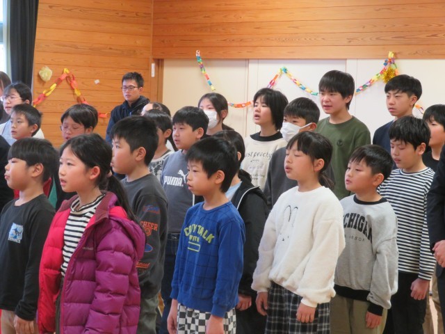 碧っ子全員から、全校児童からのメッセージと「どんなときも」の歌のプレゼントをしました。牧田先生からは、温かな言葉と「もみの木」という歌のプレゼントをもらいました。全員が感動で胸がいっぱいになりました。