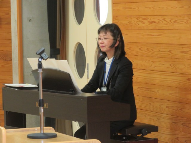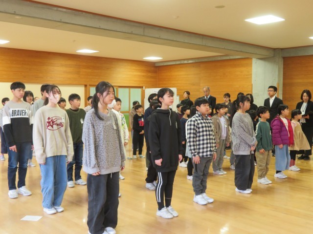 校歌斉唱では、牧田先生のピアノに合わせ心を込めて歌いました。