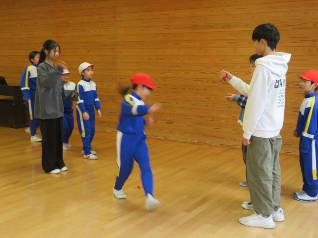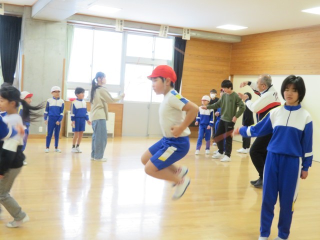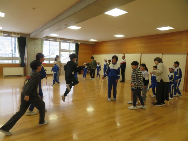 1月20日(火) 運動タイム 公開日 2026/01/22 更新日 2026/01/22 碧っ子の姿から 子供たちは、8の字跳びに挑戦しています。初めは、なかなか跳べなかったり、縄を怖がっていた子供たちが、上学年の優しいアドバイスや励ましの言葉で、だんだん跳ぶことができるようになってきました。 これから、どんどん上達し、相手を思う気持ちもふくらんでいくと思います。 +1