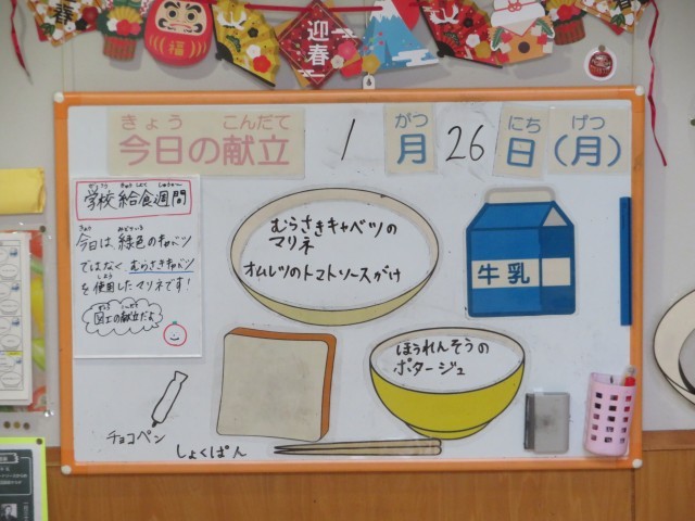 今日から1週間は学校給食週間で、各教科にちなんだ特別献立が実施されます。今日の教科は、図工です。
