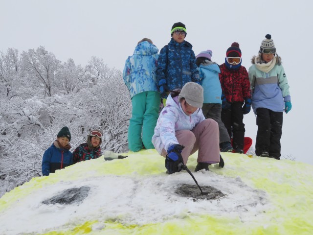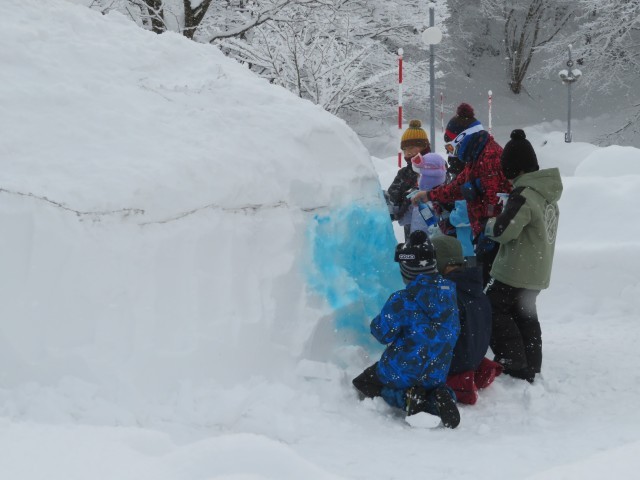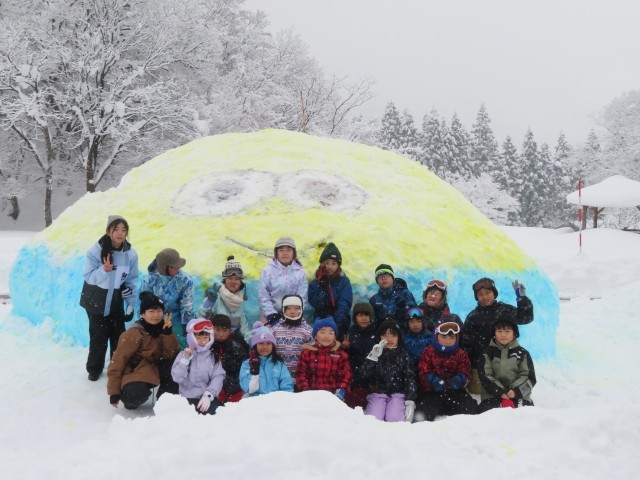 1月28日(水) 冬の天湖森活動(雪像づくり)1 公開日 2026/01/29 更新日 2026/01/29 碧っ子の姿から 今日は、冬の天湖森活動で雪像づくりを行う日です。 昨日確認したように、赤団の子供たちは「ミニオン」を協力してつくり上げました。役割を分担し、声をかけながらつくり上げる姿が印象的でした。 一面の白銀の世界に、青と黄色のコントラストが映えました。