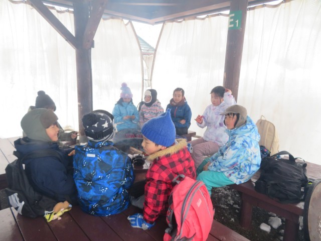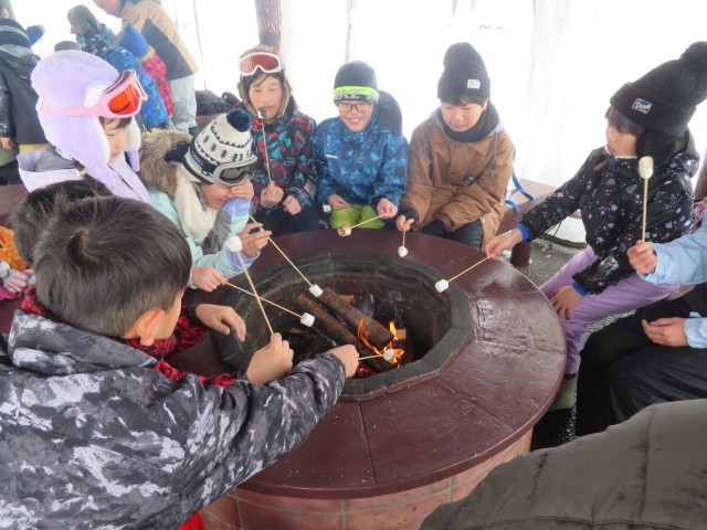 雪像づくりの後は、焼きマシュマロを味わいました。