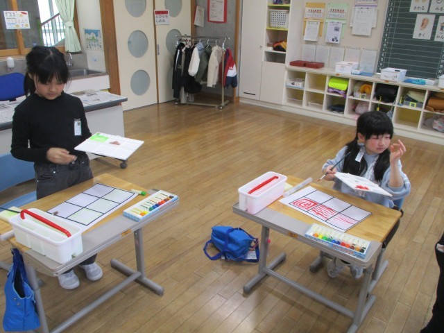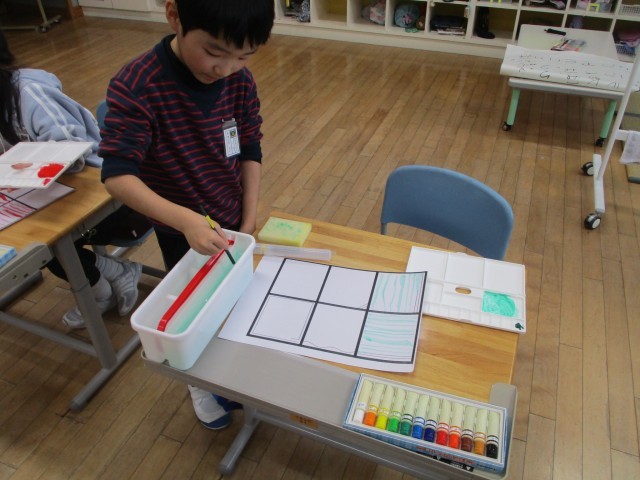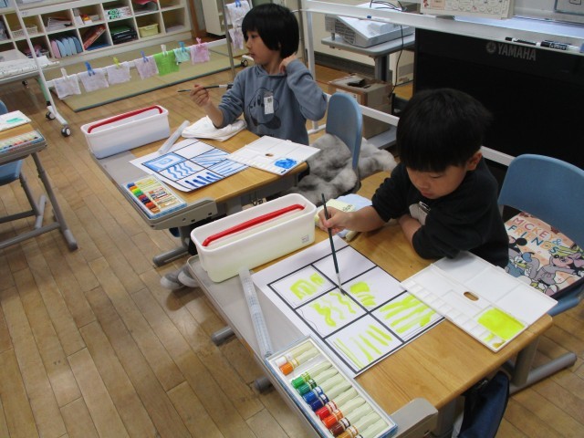 今日はパレット、バケツ、ふでの使い方を学習したあと、