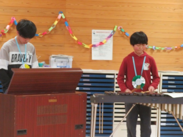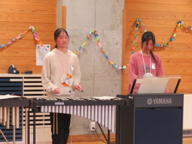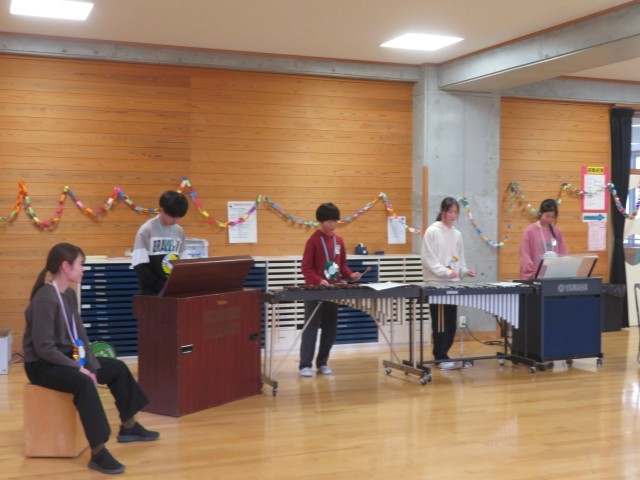 会も終盤を迎え、卒業生から在校生にお礼の気持ちを込めて、合奏「海の見える街」(映画 魔女の宅急便挿入曲)を演奏しました。きれいな音色に心洗われるひと時でした。