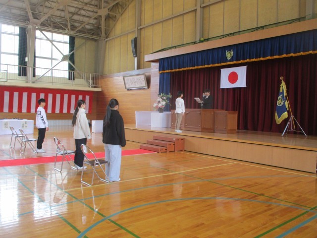 3時間目に6年生の修了式がありました。代表児童が修了証を受け取った後、校長先生から6年生一人一人の成長やよさについてお話がありました。式後の学級活動では、これまでの自分の成長を振り返り、中学校生活への意欲を高めていました。