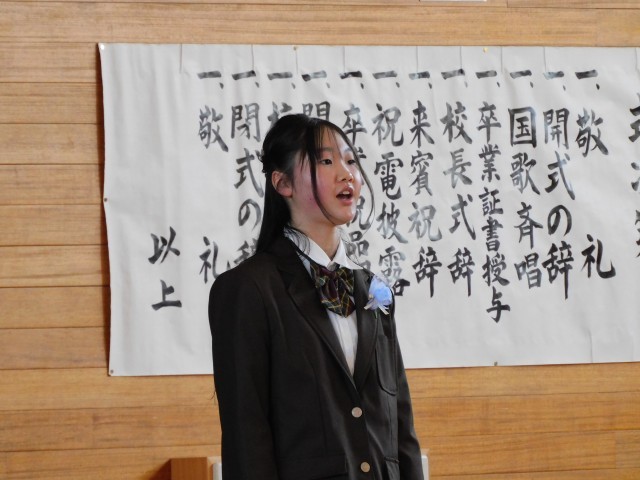 担任の呼名で一人一人登壇し、堂々とした態度で言葉を述べた後、卒業証書が授与されました。