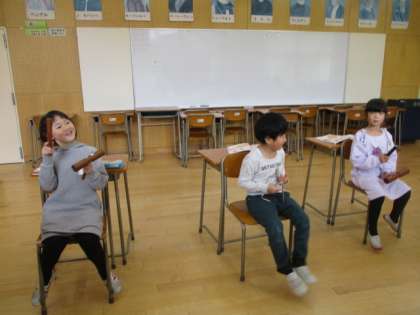 シンコペーテッドクロックという曲を聴いて、時計の様子をイメージし、楽器を使って表現しました。