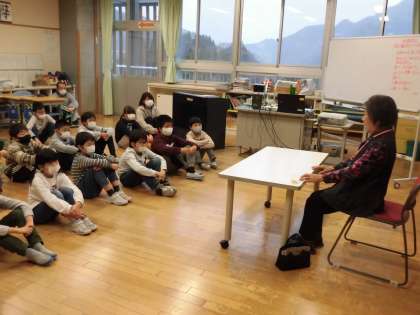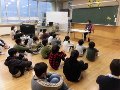 3・4年生は、「分福茶釜」です。言わずと知れた、タヌキが化けた茶釜のお話ですが、相手のことを思いやる気持ちが伝わってくる、心温まるストーリーでした。
