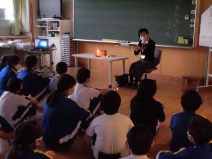 5・6年生は、「牛方やまんば」と「みそかい橋」の日本昔話2話を聞きました。