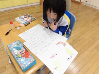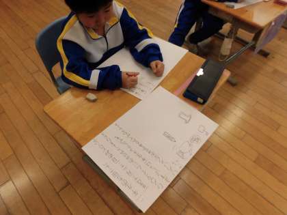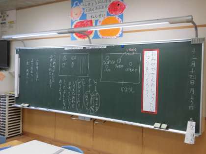 12月14日(月) 1年生「おみせやさんのしょうたいじょうをつくろう」