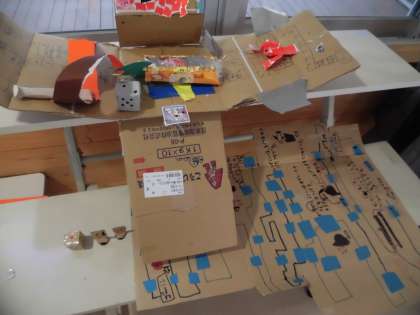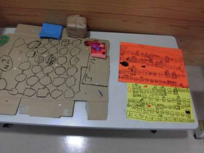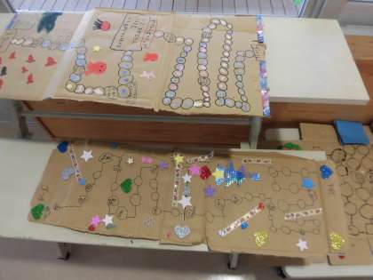 2年生は、段ボールや画用紙を使って、すごろくをつくりました。