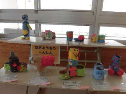 12月21日(月) 空きようきのへんしん 公開日 2020/12/21 更新日 2020/12/21 3年生の部屋 3年生は、図工でペットボトルやガラス瓶などの使い終わった容器を使って作品をつくりました。容器の形をうまく使って、おもしろい作品を仕上げていますね。