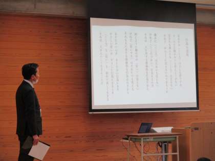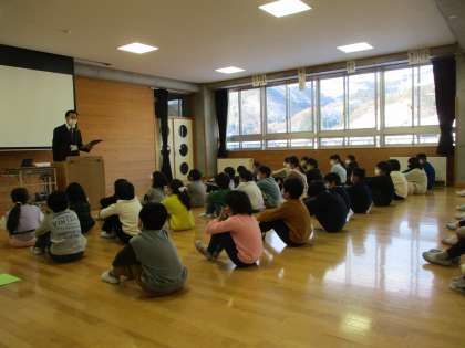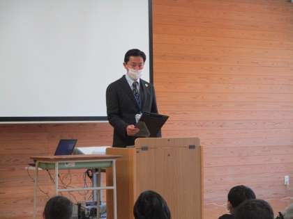 また、2011年3月11日に発生した東日本大震災の後、テレビコマーシャルでよく耳にした詩人の宮澤章二さんの「行為の意味」という詩を紹介され、人の心や思いは目に見ることができない。しかし、優しい思いが行動になった時にそれを見ることができる。心遣いや思いやりを行動で表せるような碧っ子になってほしい。とお話されました。