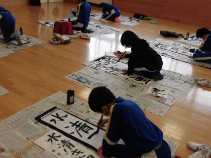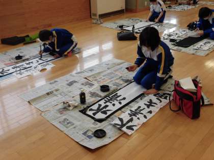 3限、5、6年生の書初大会が始まりました。