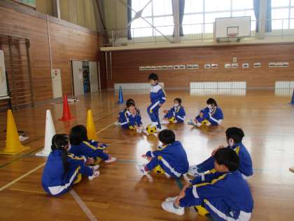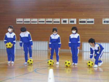 1月19日(火) 1・2年生 ボール蹴りに挑戦