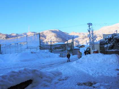 しかし、青空が広がっているので、周りの山の樹木に積もった雪が白く輝き、とてもきれいです。