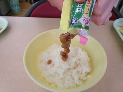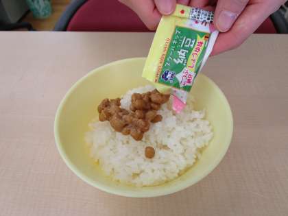 今日の給食に、納豆が出ています。