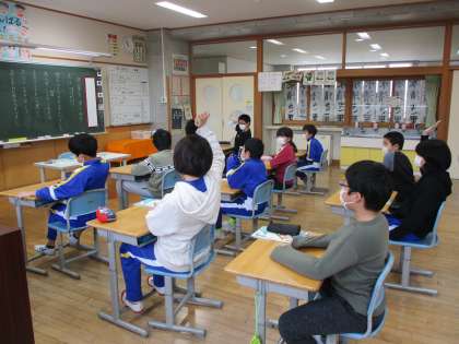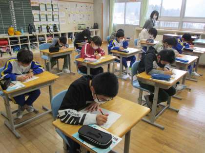 書写の時間に、枕草子の学習をしました。冬のよさを一人ずつ考え、友達に伝えました。冬の朝も昼も夜もすてきで楽しい時間を過ごすことができますね。
