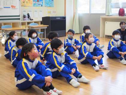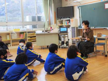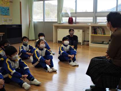 1・2年生は、「かさじぞう」のお話を聞きました。