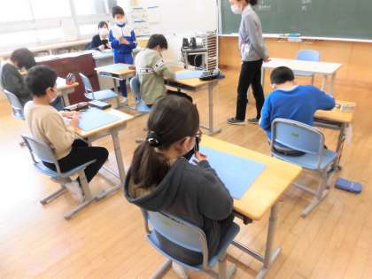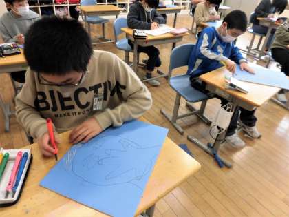 2月1日(月) 5年図工「彫り進めて、刷り重ねて」