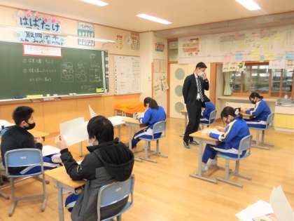 9人みんなで、それぞれの文集を回し読みして、添削し合っていました。お互いのよさや直すところを言い合える、本当に仲のよい学級ですね。