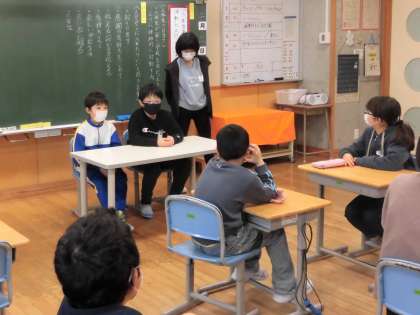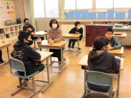 5年生は、6年生の卒業を祝うための活動のスローガンについて話し合っていました。
