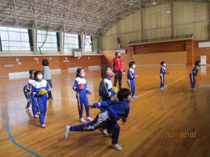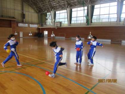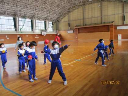 今日の体育は節分にちなんで、鬼を退治する学習を行いました。