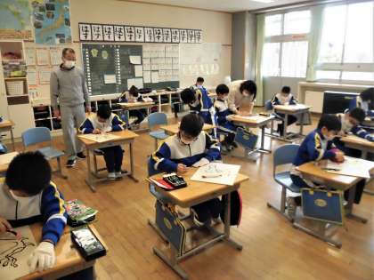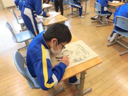 国語の物語「ごんぎつね」の場面を版画で制作しています。