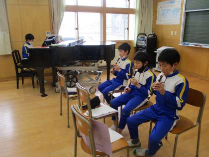 今日の音楽は、「1年生になったら」の2回目の合奏をしました。