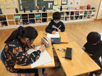 3年生は国語で、来年度の3年生に、3年生での楽しいことやできるようになったことを伝える学習をしています。