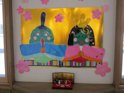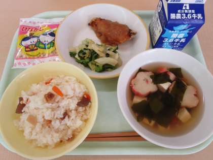 ちらしずし、揚げ魚のみぞれだれ、菜花ひたし、すまし汁、ひなあられ です。