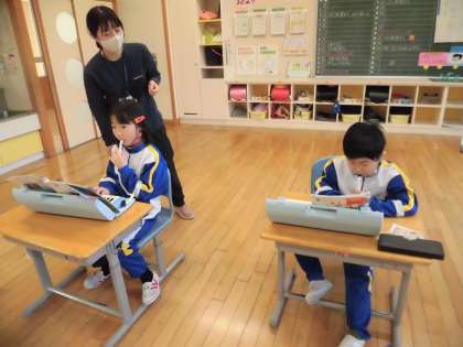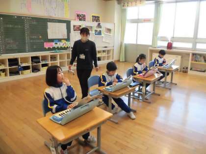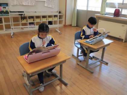 1年生は、音楽で鍵盤ハーモニカの練習をしていました。