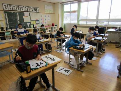 手本をよく見ながら、1画、1画ていねいに書いたので、3年生のまとめにふさわしい作品に仕上がりました。