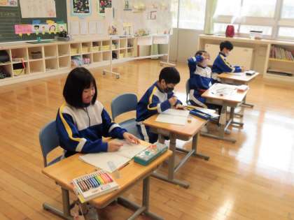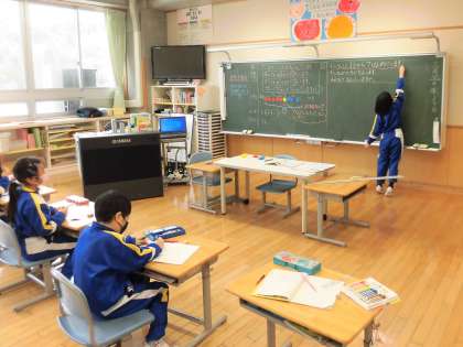1年生の算数では、文章問題で分かっていることや問われていることを文章の中から見つける練習をしていました。