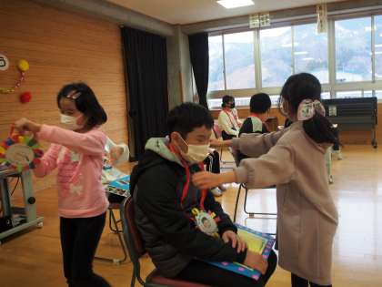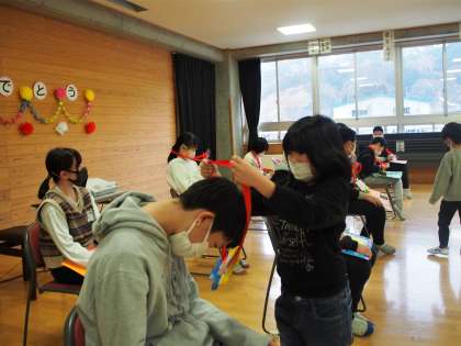 心を込めてつくったメダルを一人一人に言葉をかけて渡しました。