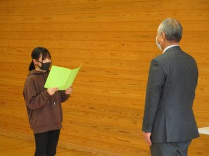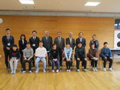 総合的な学習の時間のまとめとして、神通碧校区の防災マップを作成しました。今日はそれが完成し、地域の方へ贈呈する式が行われました。