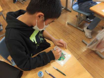 4年生は、この1年間を振り返って、一番思い出に残ったことが表現できるようなオリジナル「ミドりん」を考えていました。