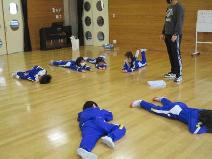 今日の表現運動では、草原と川や湖に住む動物をイメージして、表現しました。