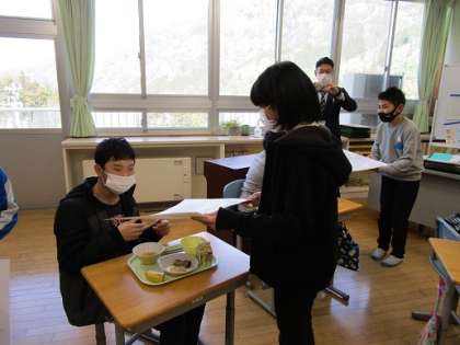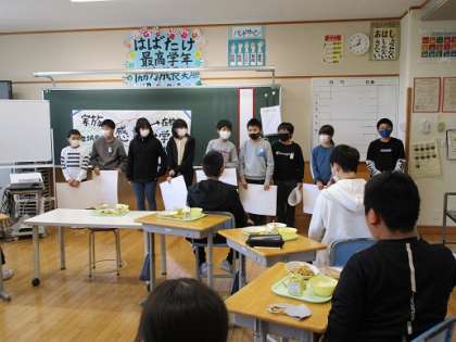 今日の給食の時間に、5年生が6年生一人一人に在校生が書いた手紙を届けました。この手紙には、6年生に対する今までの感謝の気持ちがたくさん込められています。