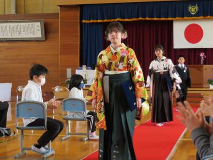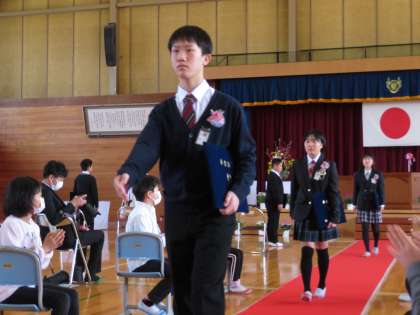 卒業生の退場する様子です。真っ直ぐに前を見つめた姿は凜々しく、頼もしく感じました。