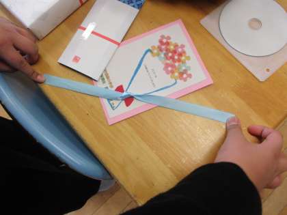 表紙に付いているリボンの長さは、6年間で伸びた身長の長さと一緒です。