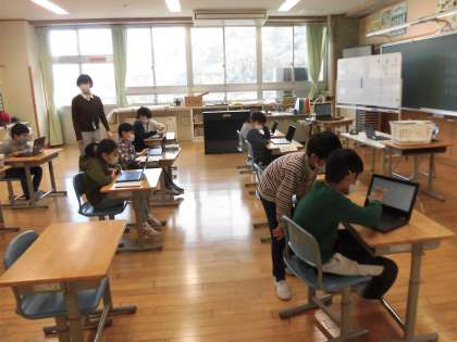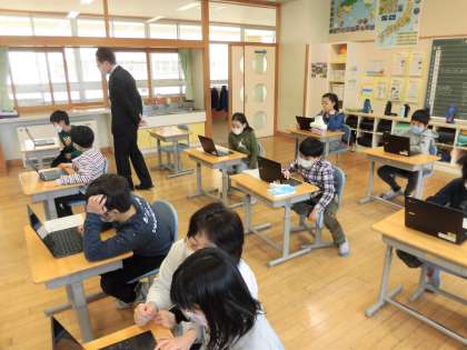 3年生は、クロームブックの操作方法について学習していました。友達の書き込んだ内容が自分の端末で見られ楽しそうでした。この後いろいろな学習で使えそうです。