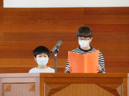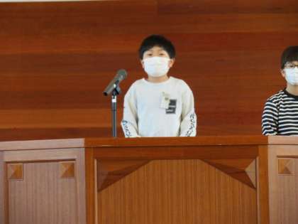 1年生と5年生の代表が、3学期にがんばったことを話しました。