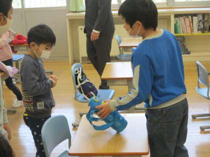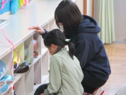 6年生が1年生の朝の準備のお手伝いをしました。困ったことがあったらいつでも言ってね。