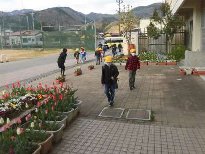 その後、1・2年生は、街頭に出て安全な道路の歩き方や横断歩道の渡り方について指導していただきます。
